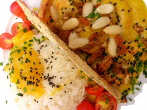 Procházeli jsme se městem a povídali si, sem tam si cvakli fotku. "Nemáš žízeň? Nejsi moc unavená?" Ptal se můj hostitel čas od času. Na to, že noc předtím po příchodu z festivalu spal asi tři hodiny, se v pětatřicetistupňovým vedru tvářil fakt statečně. Prozrazovaly ho akorát červený oči. Na oběd vybral restauraci nad řekou, nahoře na kopci, jakoby na střeše nějaké budovy, ale dalo se tam vejít přímo z ulice. Může ta scenérie přede mnou bejt ještě hezčí? Dala jsem si tygří krevety se sladkou omáčkou, mandlema a malejma kouskama vlašskejch ořechů, s rýží basmati, na které bylo něco jako mangový čatny. Nevím, jestli to bylo tím, že jsem ten den ještě nic nejedla, ale to jídlo bylo naprosto boží. Ještě teď se mi při té představě s